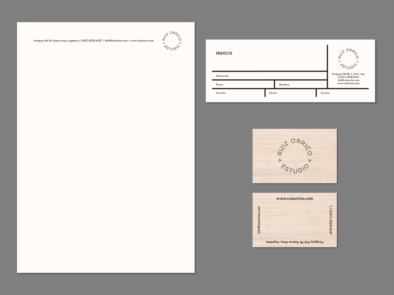 Logo, stationery and business card design for the architecture studio Ruiz Orrico.